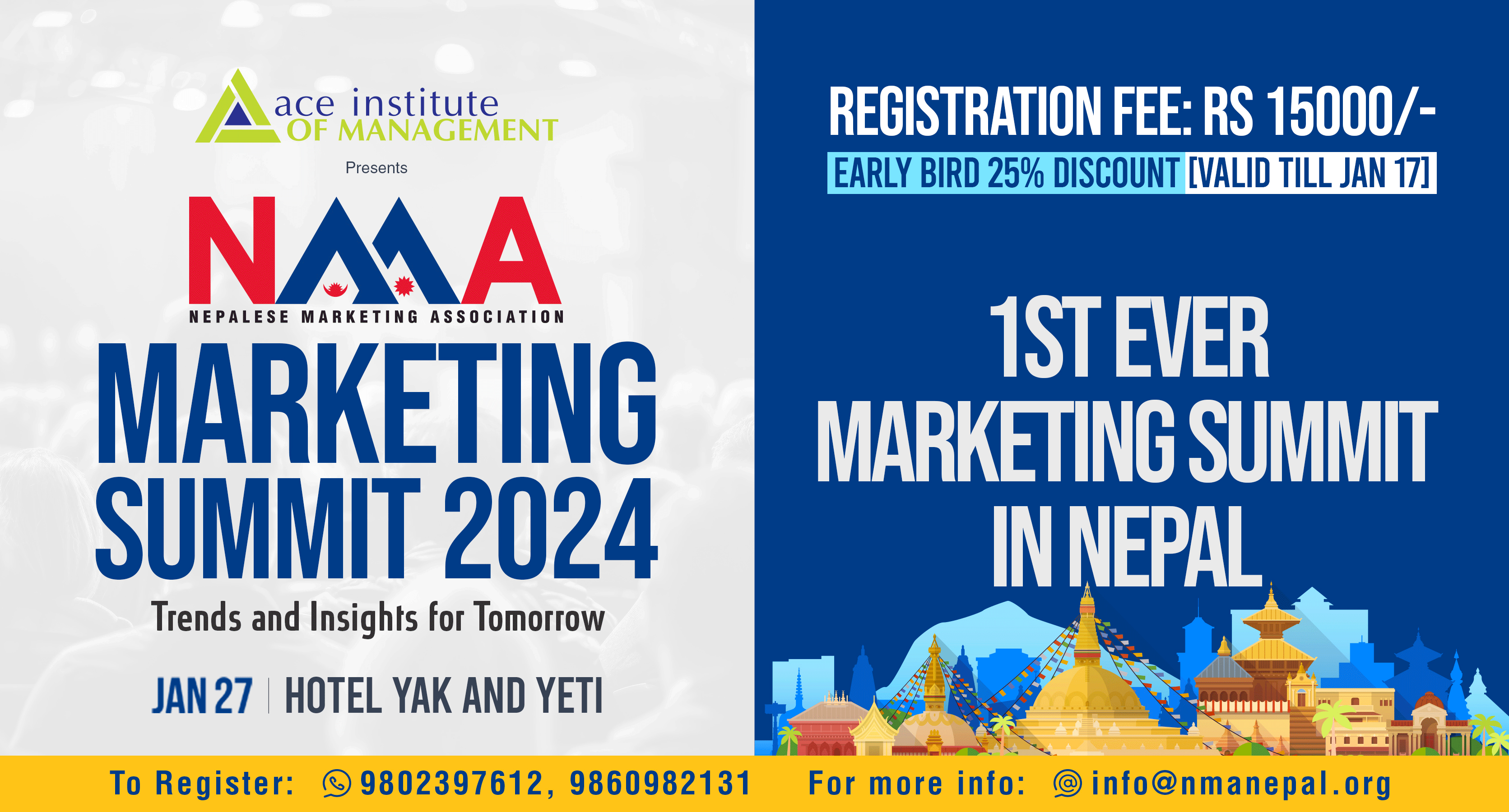 NMA- Carrying a unified voice to help marketing professionals all over the country to attain the best practice, NMA (Nepalese Marketing Association) has been registered as a non-profit organization to aid the marketing arena of Nepal.